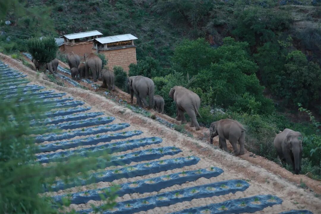 截至记者发稿,野象群沿着一碗水村,越过大立线公路,往阿荞寨方向移动。象群下一步移动走向不明。