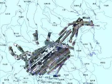 汶川地震发生后,从2008年5月14日首次飞行到6月8日完成最后一架次飞行,两架航空遥感飞机共飞行40多架次,达200多个飞行小时,达到灾区的全范围、多密度覆盖。图为光学遥感飞机的飞行覆盖情况。