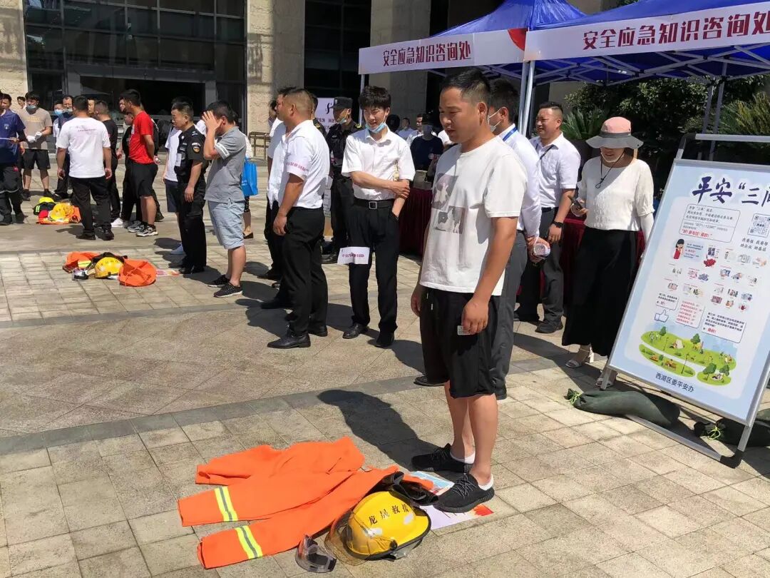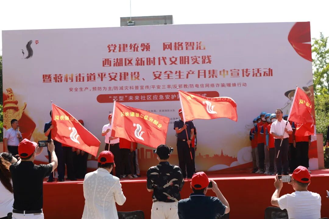 6月27日上午,由西湖区精神文明建设指导委员会办公室、西湖区应急局和西湖消防大队指导,杭州沃德未来社区教育中心、中防安护、杭州龙晟救援、蒋村街道物业联盟等承办的蒋村街道安全生产月广场宣传活动暨“芯型未来社区应急安护网”启动仪式正式在蒋村商务中心拉开序幕。