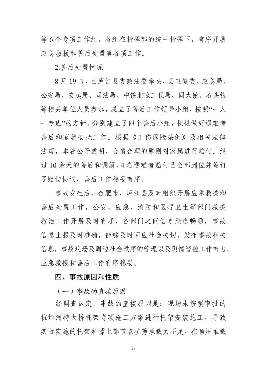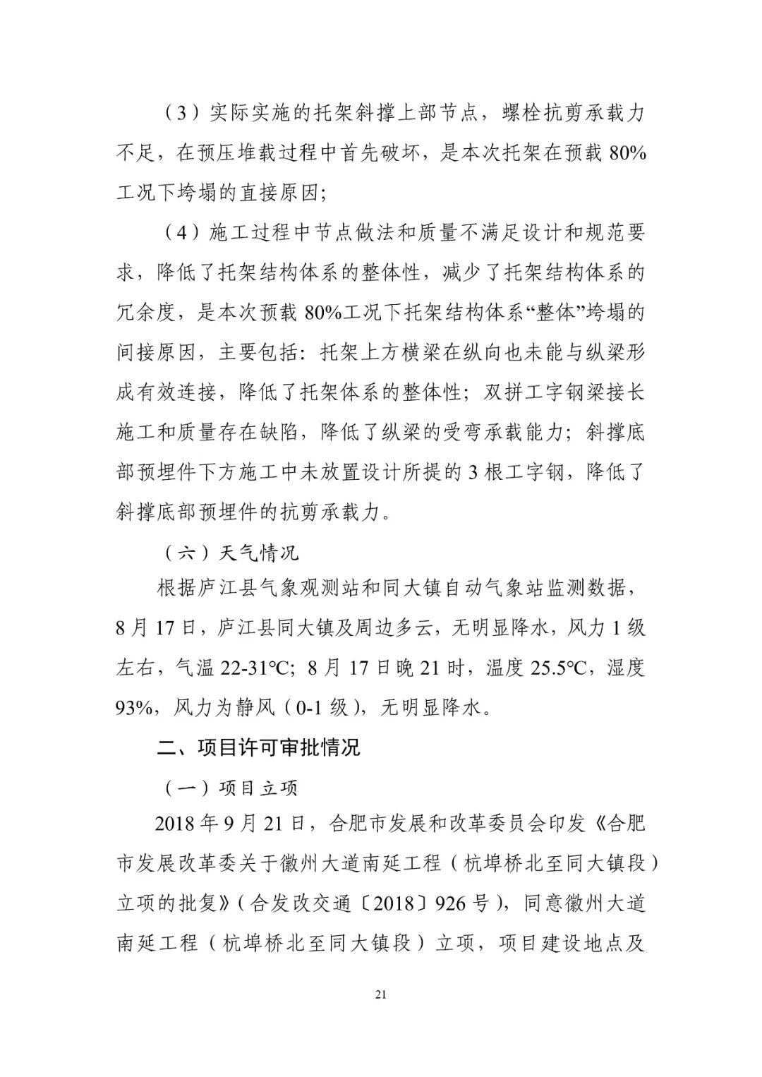 近日,安徽省应急管理厅公布了《合肥市庐江县“2021·8·17”较大桥梁托架坍塌事故调查报告》。