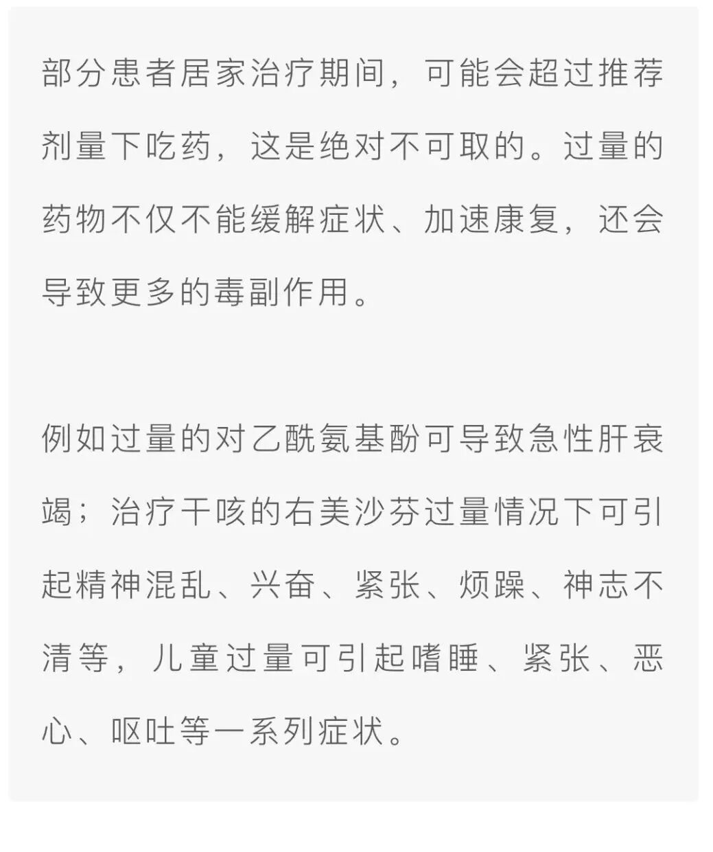 同时,华中科技大学同济医学院附属同济医院药学部药师团队提醒,新冠病毒感染者居家期间,要警惕重复用药、超剂量或超次数使用药物,同时还要避免食物与药物相互作用。