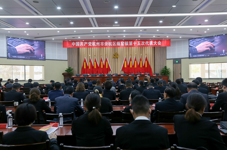 余杭区委常委、瓶窑镇党委书记汤丽玉同志代表中共杭州市余杭区瓶窑镇第十四届委员会,作题为《融入“一心一廊”打造“一地一城”为高水平建设瓶窑新城拼搏奋进》的工作报告。