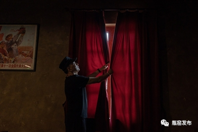 拉窗帘,下荧幕,放胶卷,开机,齿轮转动……一台长江牌最后一批台式放映机,让红色电影《地雷战》在红星电影院放映,黑白影片仿佛在叙述着电影的“前半生”。这座还原七八十年代影院风格的电影院里,悬挂着不少上世纪的海报。