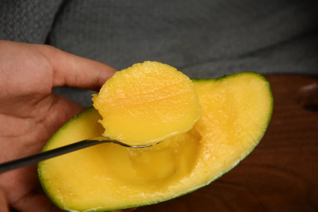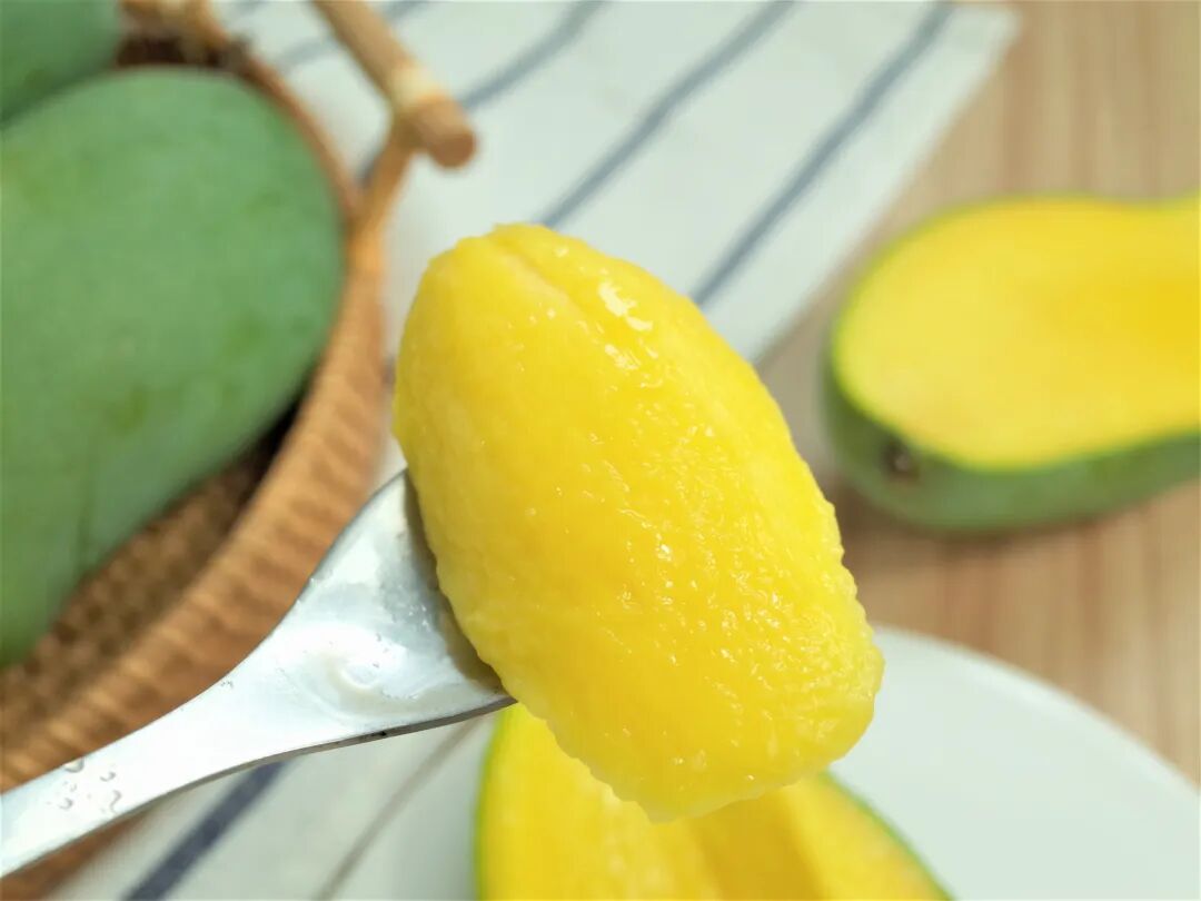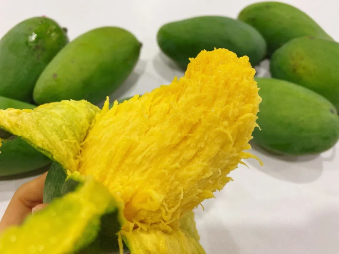它个大核小皮薄,浓郁果皮下净是嫩黄果肉,可食用率比一般芒果高太多。它味道浓郁,集清甜和奶香于一身,其他芒果遇到几乎都甘拜下风。