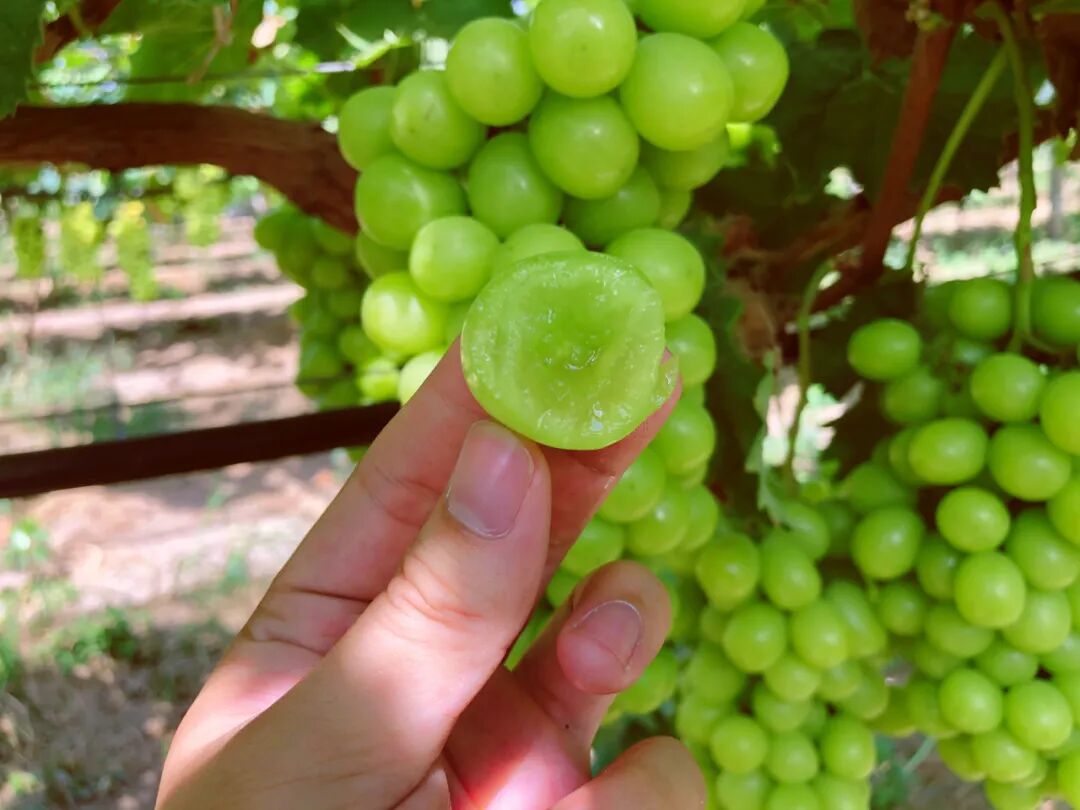 果肉饱满:个头真的很大,一颗颗都很饱满。果肉入口是脆,后调则偏软嫩,而大颗果肉就在牙齿间蹦来蹦去,反复弹跳;吃起来更爽,一颗直接塞进嘴巴里,香甜脆爽、爆汁滑嫩、咬下去“咔咔”崩开,关键是还不酸不涩,每一口都能收获水润清甜。像阿球这样会吃的人,一般会选择放冰箱里冷藏一会儿,待冰凉的时候拿出食用,简直是一颗冰凉的汁水炸弹。若是想冰冻一会儿,那香印就会变成脆甜的青提冰沙。当然,你也可以用它做蛋糕、奶茶、奶昔,都很适合夏天吃。阳光玫瑰青提好吃的关键因素是日照充足、昼夜温差大,从阳光中汲取甜度,加上土壤条件高,很难有地方能满足。而卖得贵很大一个原因是因为产量少,适合它生产的地方并不多。想同时满足好吃且性价比高的地方,则是少之又少。地处热带高原季风气候区,热量丰富,日照多,紫外线强烈。青提也就更甜,可以说是阳光玫瑰青提选择了这里。不过即便是在好的环境下种植,香印因为过于娇贵,对种植技术要求高,产量依旧少。以至于高品质的香印价格依旧居高不下。果园位于四川大凉山,冬暖夏凉,昼夜温差大,连土壤都是高山地区河流冲积土,洁净且富含有机质。再经过果农悉心养育和给力的太阳做后盾,养出甜分和晶莹剔透的绿宝石青提。还坚持“一藤一果”,人工巡视操作,大量修剪枝叶花果,让每一颗果子都感受日照沐浴。再单串套上袋子保护,长出来的青提更干净、果子更大!果园通过权威检测,指标合格,在产地现摘现发,每一串都是精心挑选的饱满香印。在果园里,甚至可以直接撕开包装摘下吃。寻味这次的阳光玫瑰香印青提都是新鲜采摘和精挑细选,是从每串葡萄中挑出来的“佼佼者”。当然,包装也很安心。穿了“宇航服”的香印青提,采摘当天就发出。到手不掉粒,不发软。打开包装,一颗颗晶莹剔透的碧绿色看着就心情好