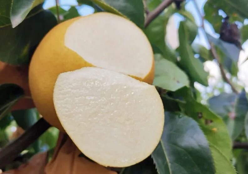 秋月梨其实是杂交梨,用丰水梨和新高梨、幸水梨杂交而成。