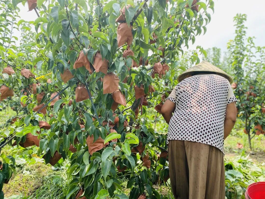 果园经过长时间的经验积累,已经琢磨出一套科学的种梨方式。