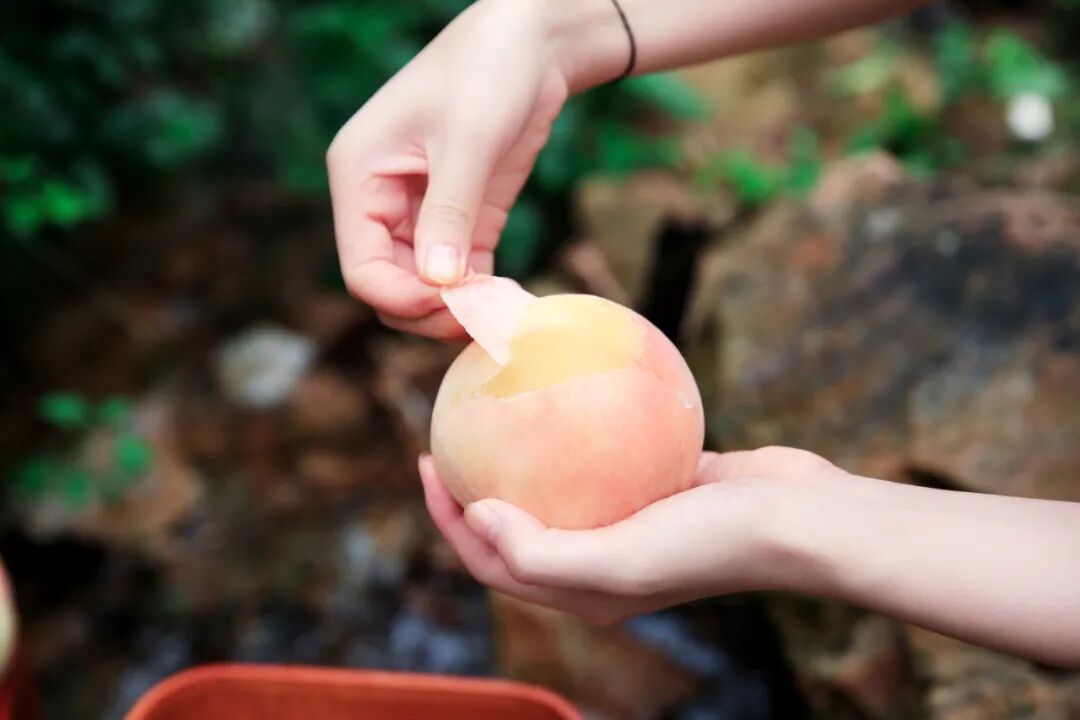 不过徒手吃它也有一个烦恼,皮薄汁水足,一不小心就从指尖顺着流到手臂。以至于吃完手上还是满满桃香![]()