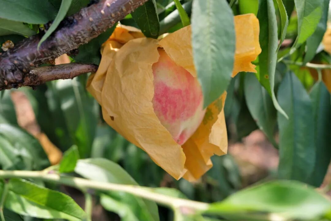 林叔种了五十多年桃子,带着村里人一起把水蜜桃种成了产业,是业内顶呱呱的大牛。林叔告诉我们:今年日照多,出梅早。所以这几天的桃甜分到达巅峰状态,趁现在吃最好不过。阿球当场揭开一颗桃子皮看,果然,它身上还有一块颜色偏深的“糖斑” 呢,这能不甜不好吃吗~tips:(扫文末二维码添加阿球为好友,即可领取10元优惠券;至尊帝王限量款还可以领68元优惠券,限量100份)一颗好的奉化玉露,光靠自然赋予的条件是远远不够的。从开花到摘果的3-4个月里,需要经过重重考验。为了保证一颗桃树上所给予的养分充足,每根桃枝只留1到2颗桃子,有一半甚至以上的桃子都需要被打掉。