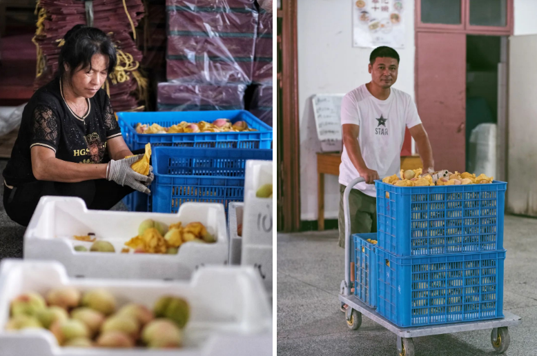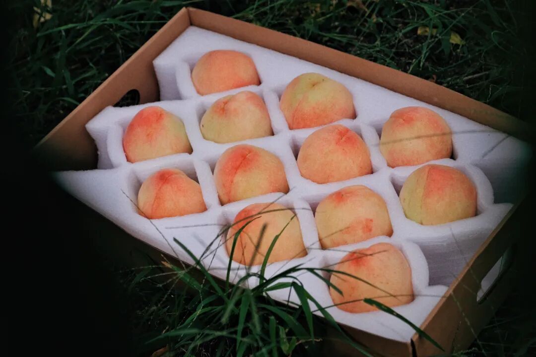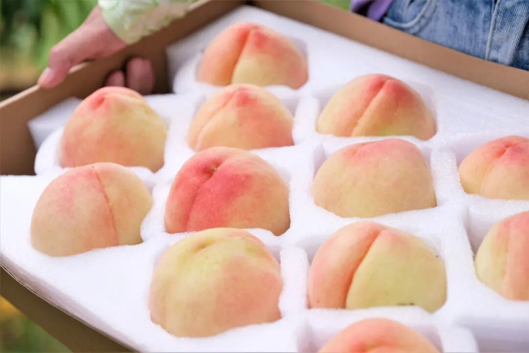 全程纯天然种植,不喷农药、驱虫剂;全靠悉心呵护,用家养走地鸡粪作肥料。而且为了防止鸟虫叮咬和日晒过多,果农们需要给桃子一个个套上“单间”,这些都是人工操作。到采摘这步就更严格了。果农们要在凌晨2点到4点间到达山上摘果。在较低的温度下桃子也更好保鲜,个个圆润乖巧。然后以最快速度送往基地过第一轮筛选。再经过机器给每颗桃子按重量分类,确保果子个头均匀,最后才能依次单个装好封箱。这些步骤都需要在早上6点前结束。之后就是水果批发商排队抢货的时间,基本上一抢而空,8点之后才能轮得上散客呢。