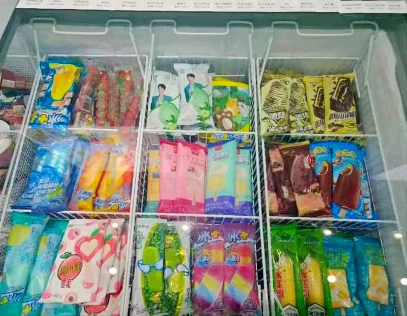 随后,小编又来到广泉冷饮经销部,发现人流不断,购买雪糕的顾客基本直接用小筐挑选,一兜兜满载而归。与新式雪糕店不同的是,网红雪糕的身影并不多见,在售的基本是碎碎冰、拔拔凉、冰工厂、德氏奶糕、巧乐滋等常见平价雪糕。