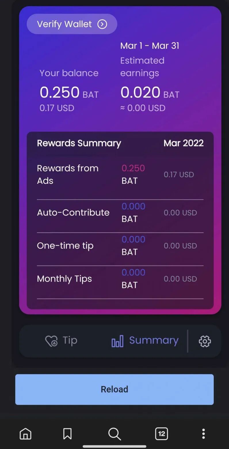 作为一个区别,Brave为用户提供BAT(Brave Attention Tokens),来作为观看广告的奖励。有了这些token,你可能会赚到一些钱——尽管回报不是很高——或者为网站或内容创作者提供小费。