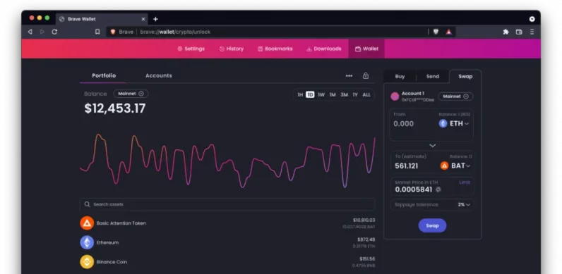 Brave提供了一个内置的加密货币钱包,并能方便地交易代币