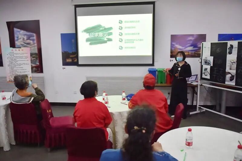 在北京市建国门街道赵家楼社区议事厅举行的“两桶一袋”居民征求意见恳谈会上,来自社区的12位居民代表对“两桶”款式进行投票选择。同时,街道针对桶站位置、定时定点投放等垃圾分类运营管理听取居民意见(2020年5月2日摄)。