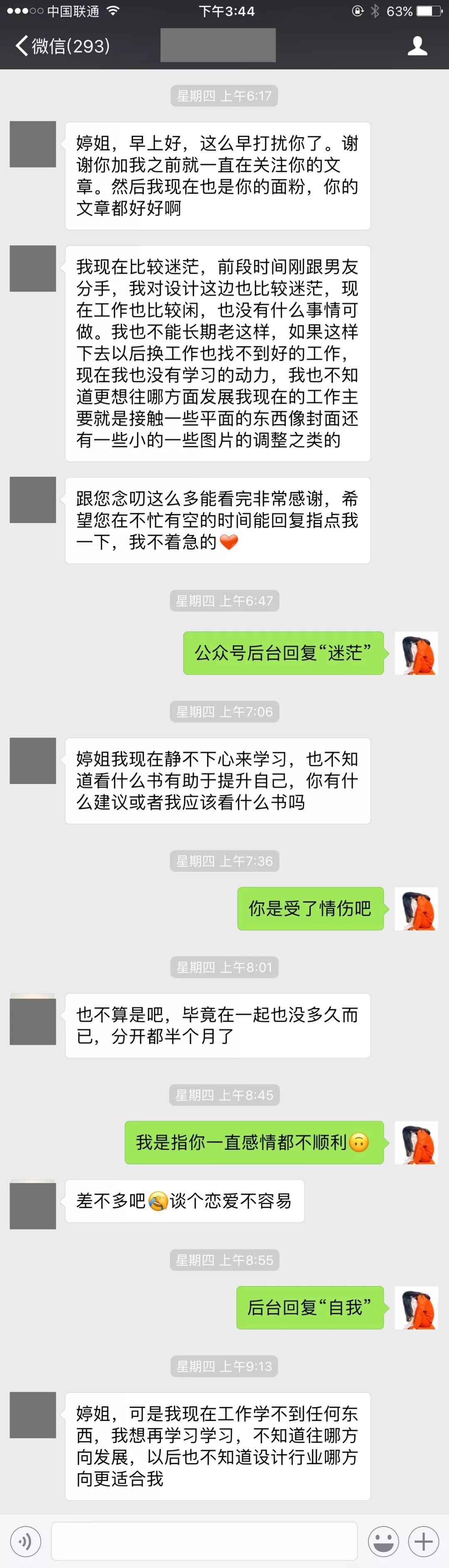 比如前段时间有人问我说,感到自己很迷茫,静不下心来学习,然后我就问是不是感情也不太顺利,最后还真的是。