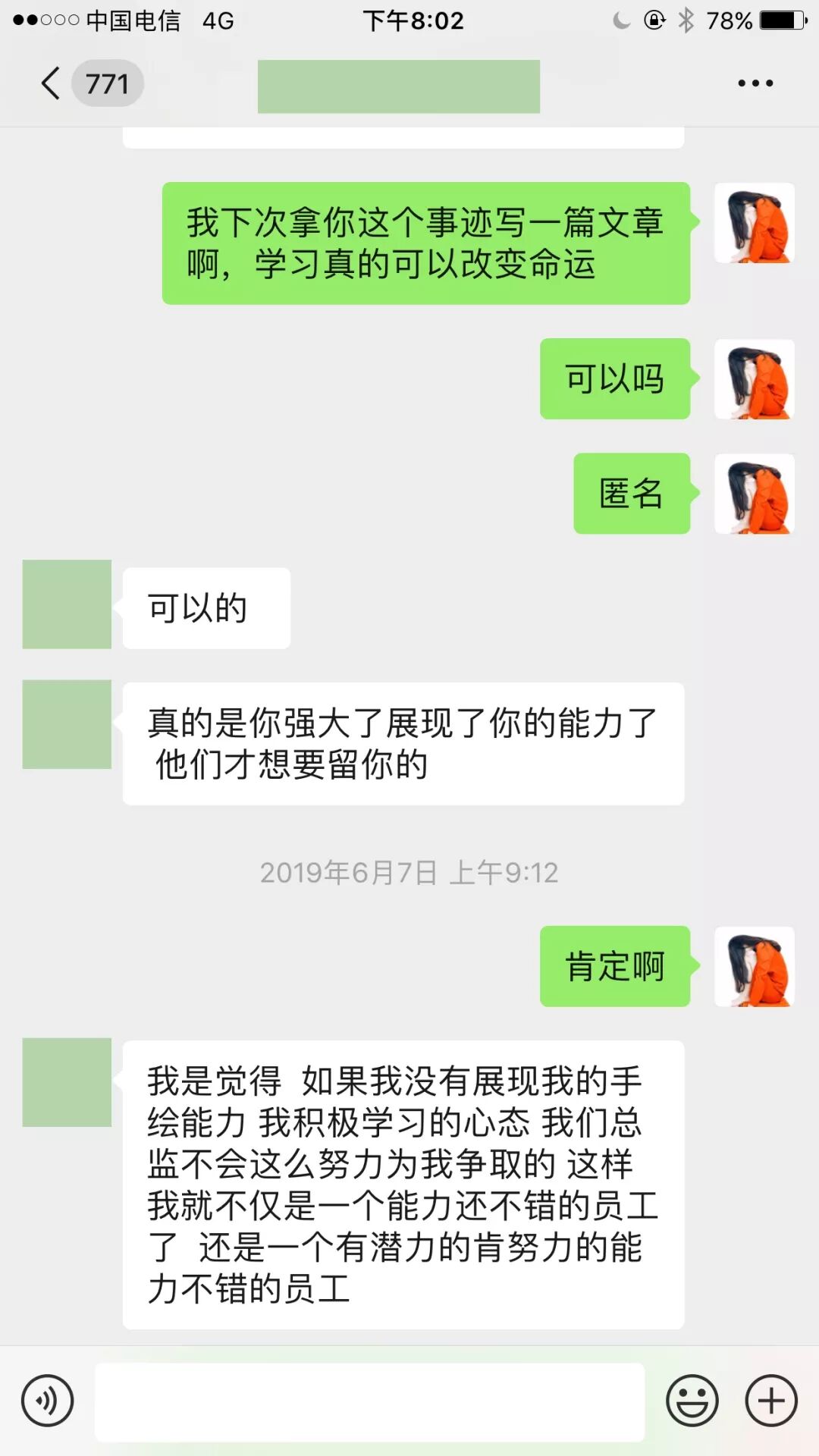 比如,5月份的时候,有一位面粉,她的加薪经历可谓是一波三折了(为保护面粉隐私,敏感信息都打码了):