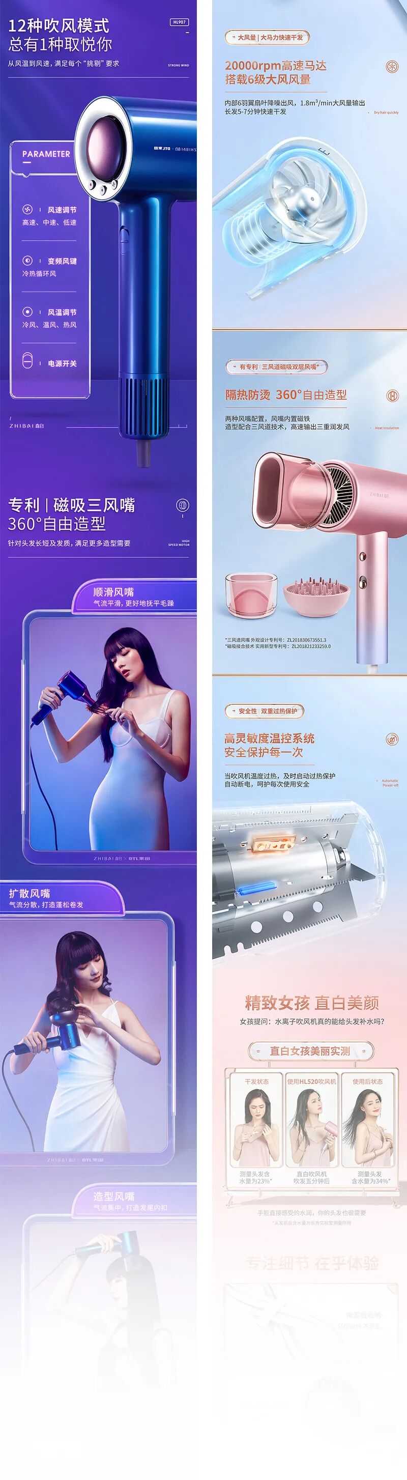 当然,同一个系列的产品详情页设计看起来统一的同时,再氛围点缀物和一些局部细节上允许有略微的差异,也是很有必要的,这样才不会显得视觉疲劳。