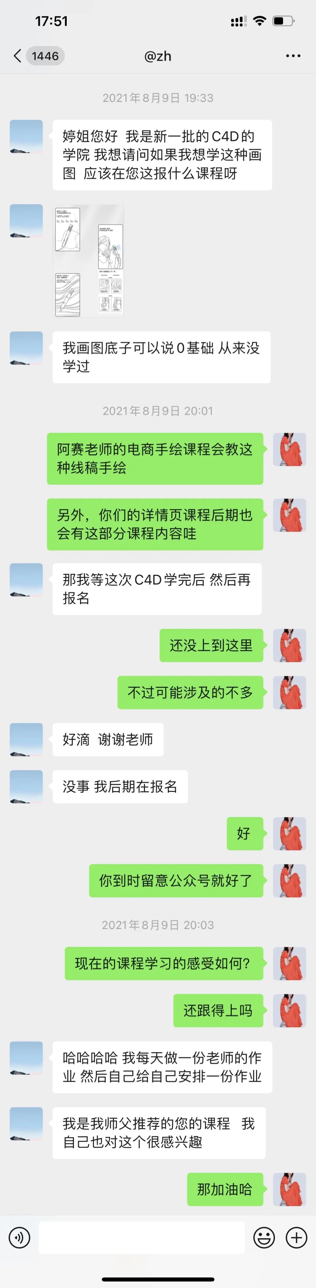 我也是从这时候才知道他有个师傅,之前也是报名了我推荐的手绘课程,现在都已经是公司管理层了: