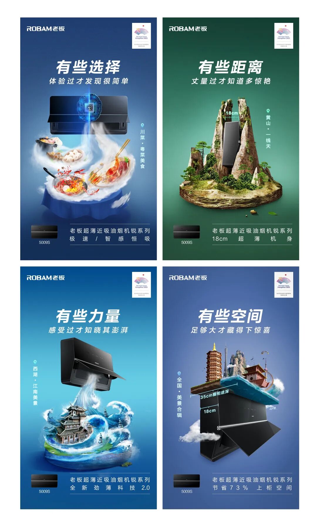 再比如像下面这一组点奥团队为老板电器打造的手机开屏广告图其实也是C4D建模完成的: