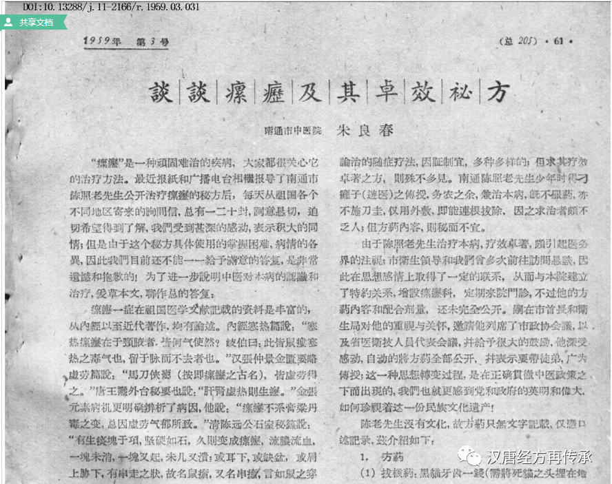 朱良春发掘民间中医故事之二 —— 治淋巴结核的陈照