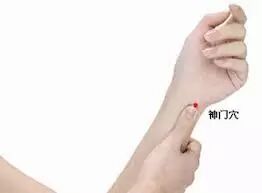神门穴:位于腕部,腕掌侧横纹尺侧端,尺侧腕屈肌腱的桡侧凹陷处。