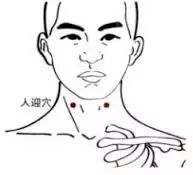 人迎穴:位于颈部,结喉旁开1.5寸,胸锁乳突肌的前缘,颈总动脉搏动处。