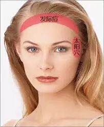 太阳穴:位于耳廓前面、前额两侧、外眼角延长线上方。