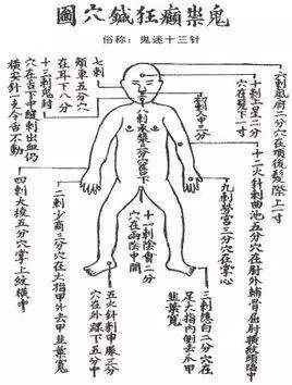 十三鬼穴出自唐代大医孙思邈(公元581—682年)着的《备急千金要方·卷十四·风癫第五》,其云:“扁鹊曰:百邪所病者,针有十三穴也,凡针之体,先从鬼宫起,次针鬼信,便至鬼垒,又至鬼心,未必须并针,止五六穴即可知矣。”