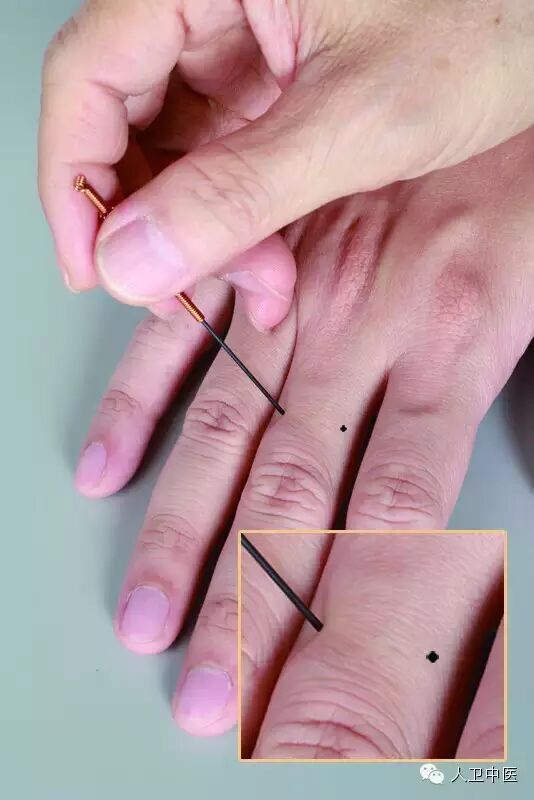 注意:禁忌双手同时取穴。无名指中节另一侧正中央为凤巢穴,主治相同