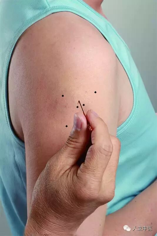运用:左肩痛扎右穴;右肩痛扎左穴