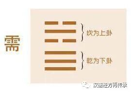 为什么蒙卦之后是水天需?就像一个小孩子的成长过程。夫妻结婚还没生小孩的时候,叫乾为天,坤为地,妈妈怀孕了,小孩在妈妈肚子里的时候叫水雷屯,小孩子一生出来,山水蒙,小孩子要成长,要水天需。物之始生,必待养成,等待养成的时间叫水天需。反过来,当你要养成自己的时候,一定要外险内健,你把房子弄得破破烂烂的,你每天在那好好读书,小偷都不会来偷你。如果你把房子弄得很漂亮,晚上你在读书,外面有响动,小偷来了,你的念已经走了,会影响你的学习。需讲的是饮食之道,养人,水在天之上,水跑到天上去,水往天上走就是云,有蒸润的现象。这个象就好像一个人吃了食物到肚子里面去,食物在养一个人一样。天人合一。