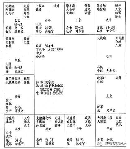 如果落陷就不成正格了,那就不正了,变成偏了,男孩子拿到还好,女孩子拿到会做偏房。男孩子拿到,个性喜怒无常,表里不一致。算命很怕算到这种,不能明讲,又反背,很累。寅宫太阴星化忌。他的命宫在申宫,三方四正会到,左右是巨门太阳落陷已经够杀了,对面又是太阴化忌来冲。杀星来的时候,如果在本宫,杀星的力量就不强了,如果是对面会来,力量最大。如果是命宫化忌有杀星还没什么,对面有化忌来冲,再加上三方四正没有吉星来会的话,有个格叫半空折翅。就是说限会在中年,三十岁左右。有的是得了先天性的绝症,比如艾滋病,或者SUE等,还有一种是后天的灾星进来,都会有这种现象。