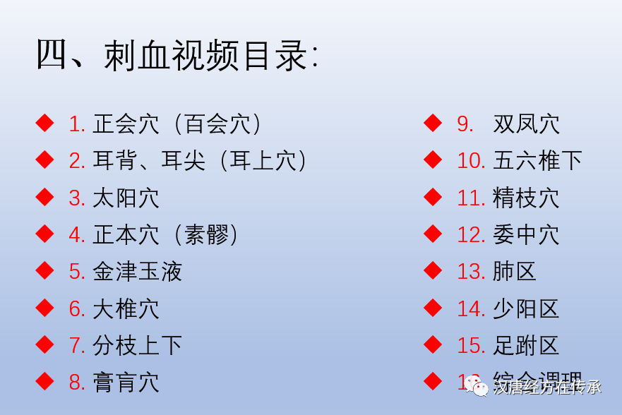 四、U盘课程内容更全面,既有理论教学内容,又有针刺演示视频,还有刺血视频,刺血内容以前是秘而不传的,只有正式拜师的弟子才可以学到,这次的刺血内容也增加到U盘里。非常超值。