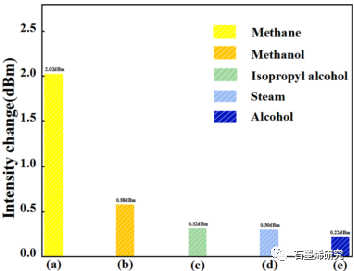 图10. 涂覆SnO2/石墨烯的MCF超光纤传感器对甲烷和其他分析物的选择性。
