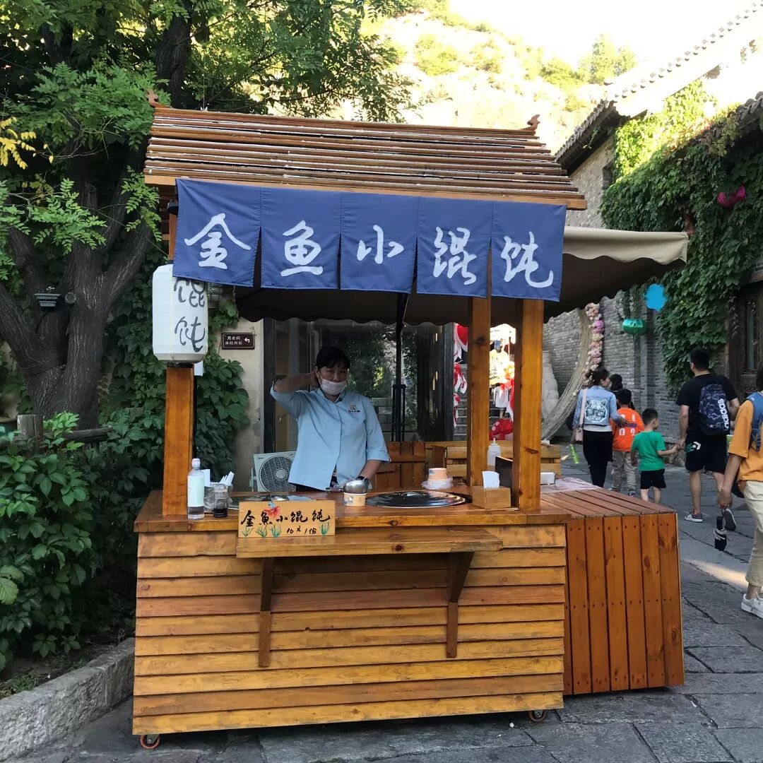古北水镇也没有老酸奶。但是可以买到金鱼小馄饨和牛肉火烧。既不是泡泡小馄饨也不是驴肉火烧,而是取名于北京“金鱼胡同”的金鱼小馄饨和放了洋葱的牛肉火烧,真正的折衷风格。