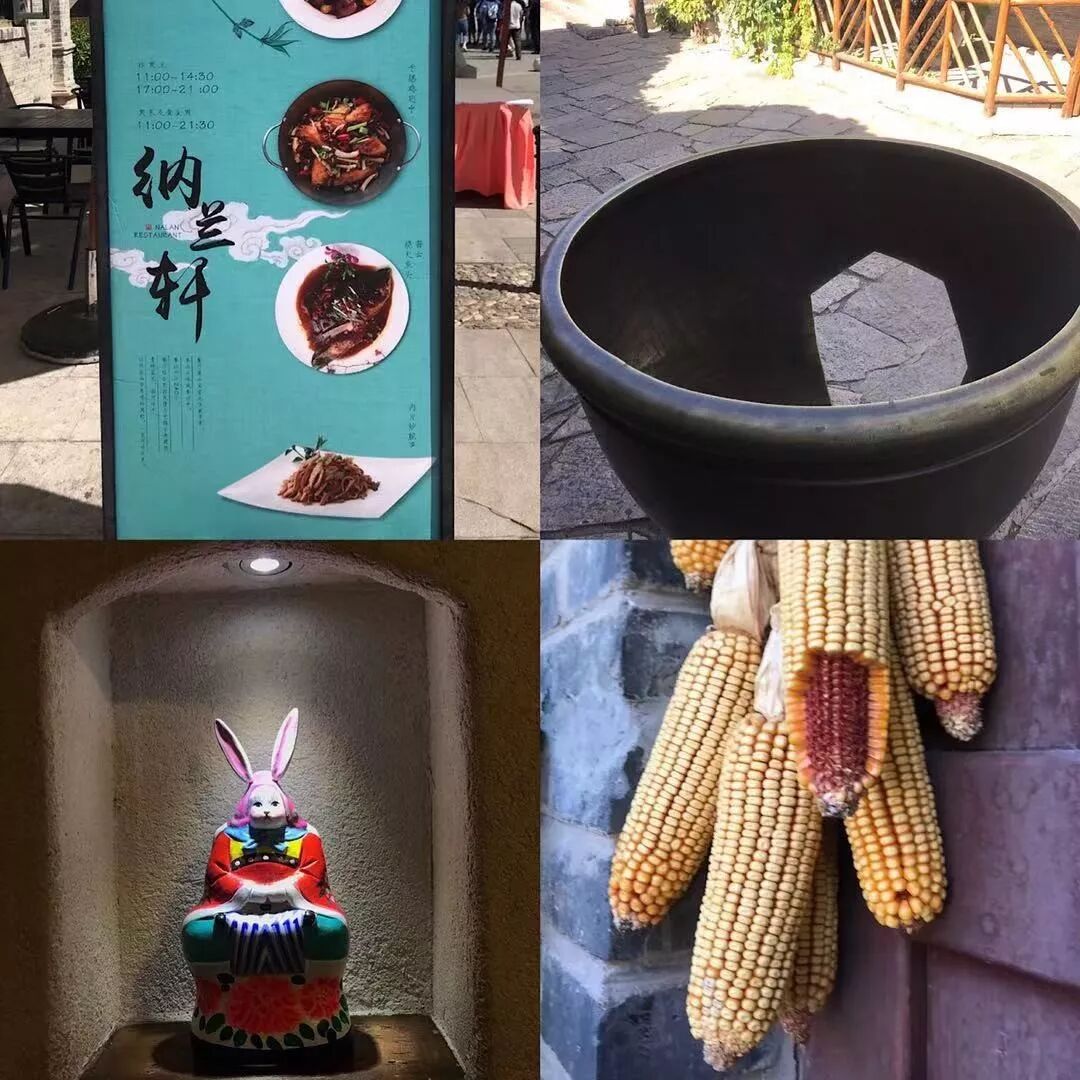从花布的设计中不难看出,古北水镇的一个最大特点:处处用心。古镇处处是细节。下面四图从左到右、从上到下分别是:
