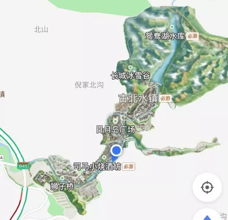 图中蓝色箭头也就是我所在的位置就是古北水镇△