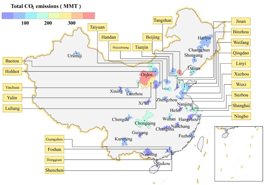 据统计,全球60%以上的化石能源碳排放来自于城市。城市一级温室气体排放数据对于监测和规划城市气候变化缓解努力至关重要。最近的研究估计,全球前25个城市的温室气体排放量占城市温室气体排放总量的50%以上,这凸显了主要城市在实现碳中和目标方面的重要性。作为世界上最大的排放国和发展中国家,中国承诺到2030年达到碳峰值,到2060年达到碳中和。目前许多城市都制定了自己的减排目标,这要求它们及时监测和报告排放情况。然而由于城市尺度的能源消费统计数据难以获取,大多数现有的二氧化碳排放清单是对国家/省级范围年尺度的碳排放核算,且存在严重滞后性(长达两年以上),限制了城市尺度减排政策的制定。