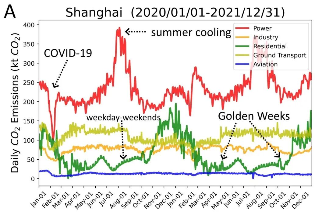 基于此,本文提出了城市尺度近实时碳排放估计框架,基于统计、遥感、观测等多源数据,建立了中国48个主要高排放城市的近实时日尺度城市碳排放数据集,量化评估了全球主要城市的电力、工业、交通、居民等多部门的日尺度碳排放变化。该数据集以更高的时间分辨率监测城市层面的二氧化碳排放,可以帮助地方政府制定政策和评估缓解效果,从而应对气候变化危机。