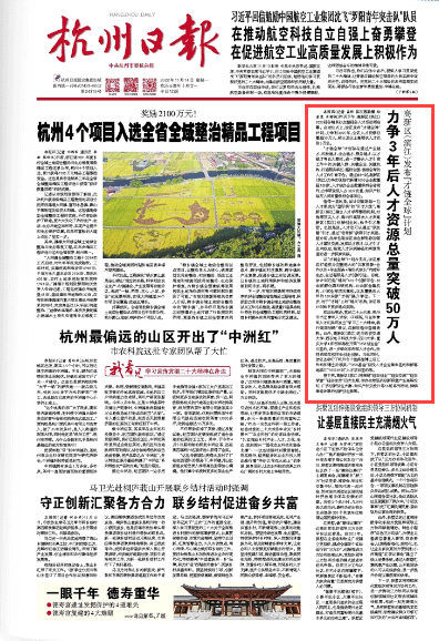 今日,《杭州日报》头版报道了