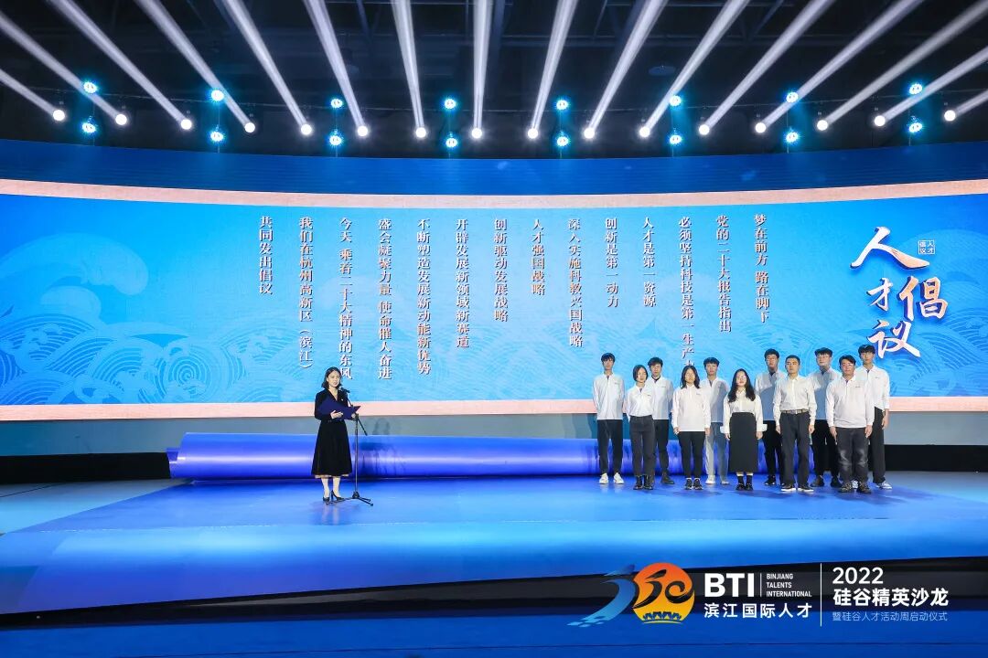 在活动现场,党的二十大代表、杭州市杰出青年人才徐川子领衔,与全体青年人才们共同发出“学习二十大精神,践行强国战略”倡议,在新征程中奋楫扬帆。此外,高新区(滨江)还与西安交通大学、西安电子科技大学、四川大学、重庆大学4所西部高校开展“5050创业金”云签约,进一步深化东西部人才合作,扶持西部在校师生创业创新。与此同时,该区还举行了杭州市十佳典型博士后工作站和博士后颁奖、“5050基金”拟投人才企业集中签约和新落地滨江“5050计划”人才项目签约等。