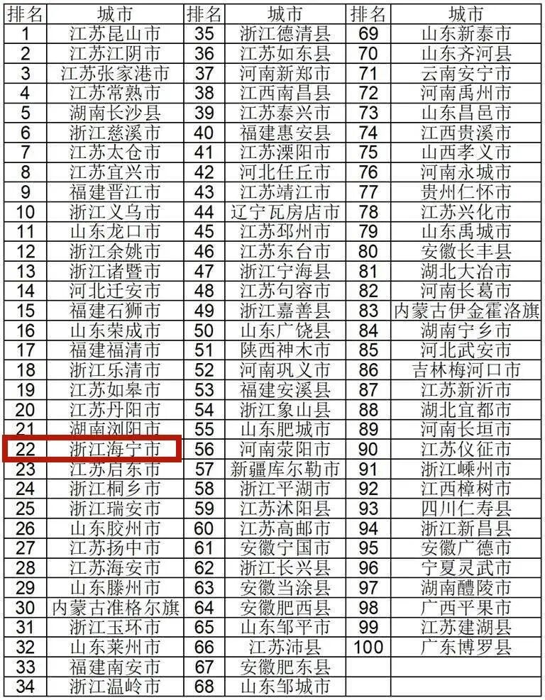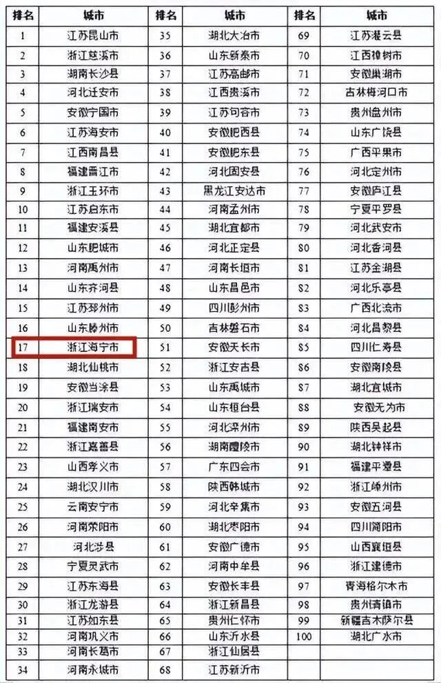 在全国投资潜力百强县市中,海宁市排名第17名。