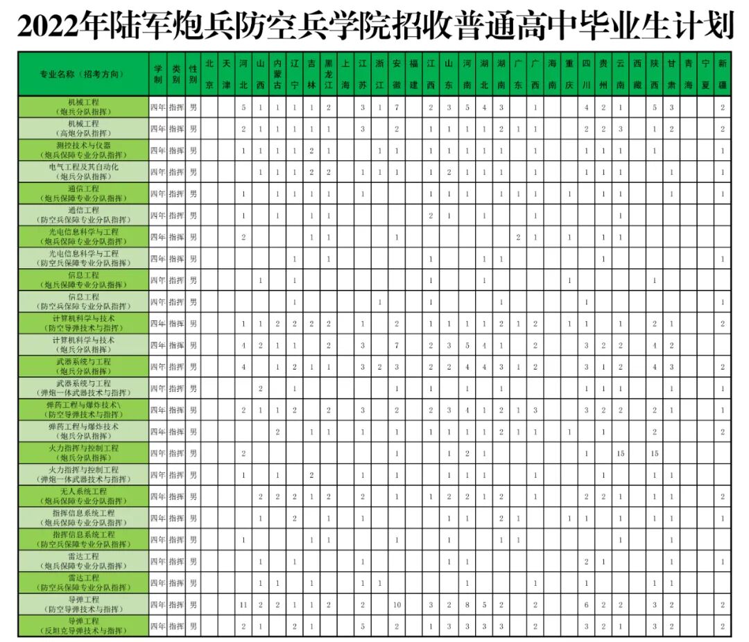 中国人民解放军陆军炮兵防空兵学院是一所主要承担炮兵、防空兵指挥军官培训任务的高等教育院校,同时承担博士、硕士研究生教育,现职军官培训,文职人员培训,军士教育和外军留学生培训等任务。2017年7月,学院由原陆军军官学院、南京炮兵学院、防空兵学院、沈阳炮兵学校调整组建,院本部设在合肥,下设南京校区、郑州校区和士官学校(沈阳)。
