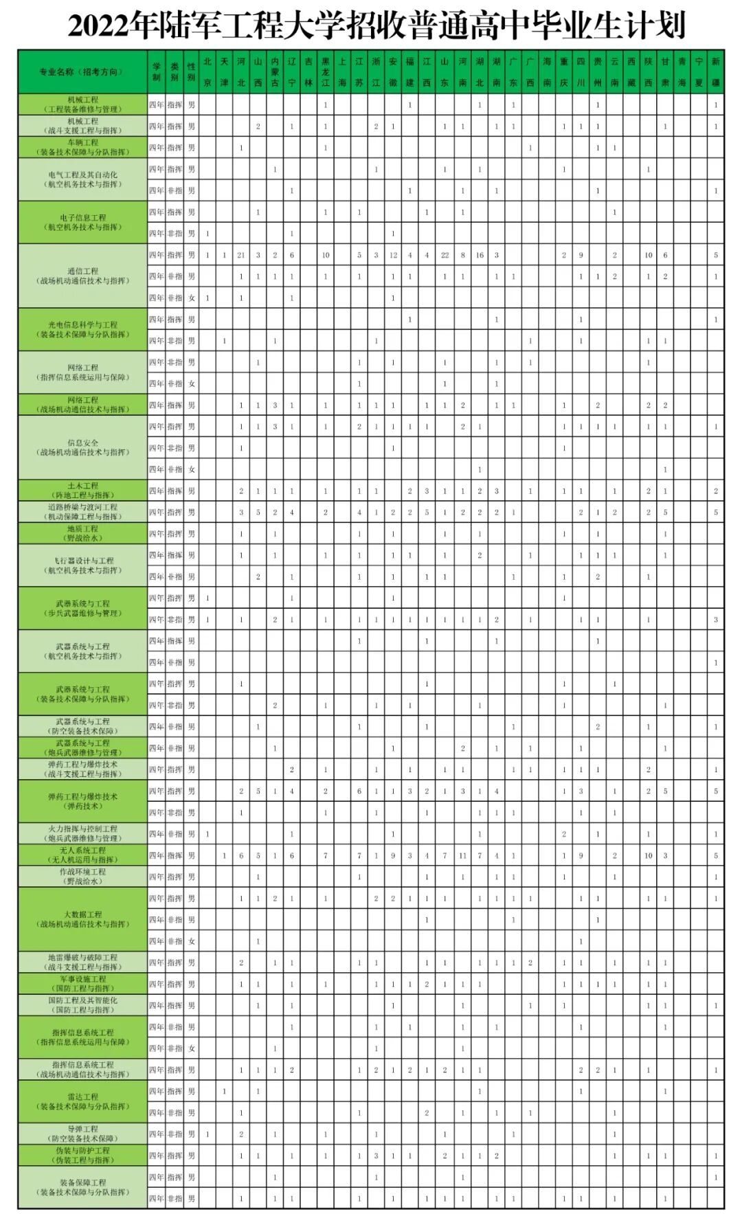 中国人民解放军陆军工程大学2017年以解放军理工大学、军械工程学院主体和重庆通信学院、工程兵学院、武汉军械士官学校为基础调整组建,是我军人才培养与科学研究并重、工程技术与作战指挥融合的综合性工程大学。校本部坐落于江苏南京,另设石家庄校区(河北石家庄)、通信士官学校(重庆)、军械士官学校(湖北武汉)和训练基地(江苏徐州)。