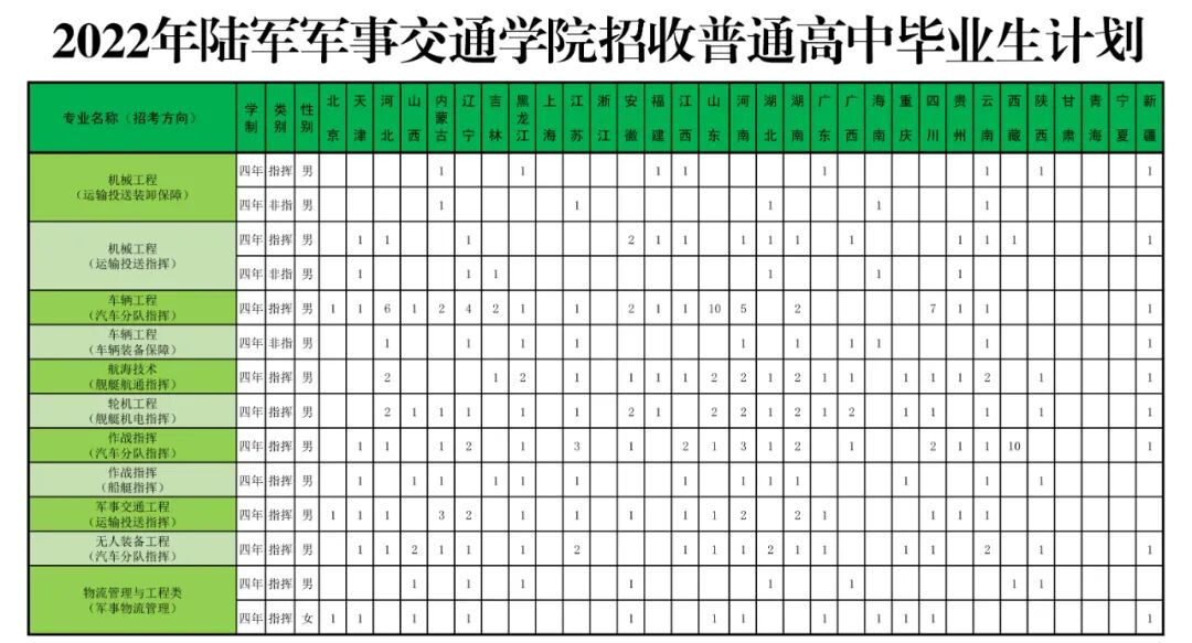 中国人民解放军陆军军事交通学院是一所专业类高等教育院校,主要面向全军培养运输投送、轮式车辆装备保障、军事物资配送专业领域军官和军士,是我军军事交通人才培养的基地、理论技术创新的中心、决策咨询与服务的智库、文化传承与引领的阵地、国际合作与交流的窗口。下辖院本部(天津市)、镇江校区(江苏镇江)、汽车士官学校(安徽蚌埠)和军事交通运输研究所(天津市)。