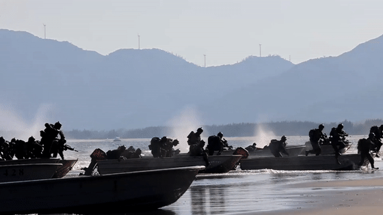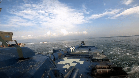 数十辆两栖装甲车、冲锋舟