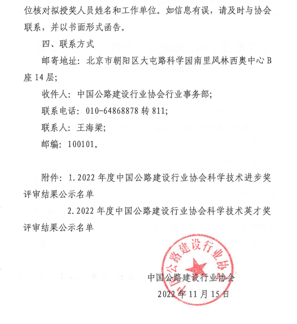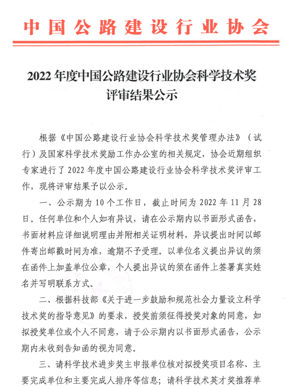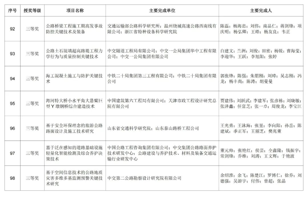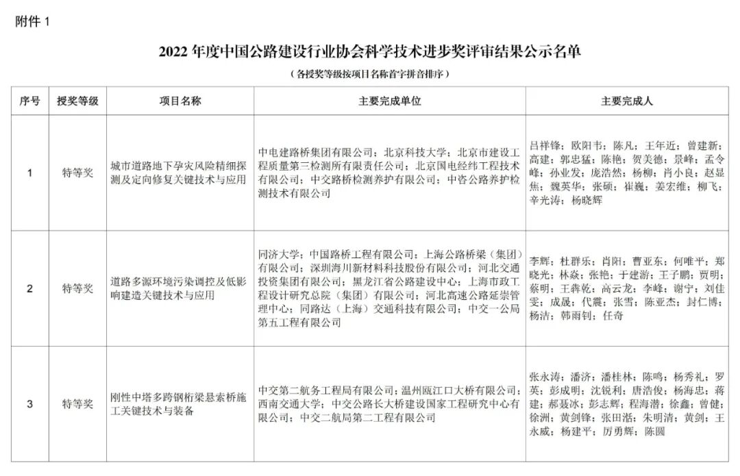 特等奖7项!2022年度中国公路建设行业协会科技奖评审结果公示