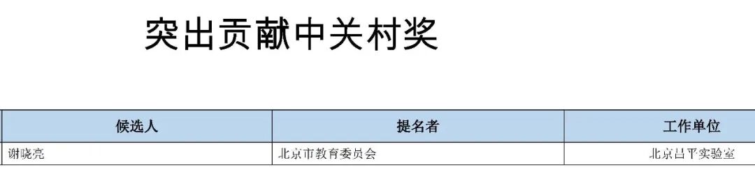 授予谢晓亮院士北京市突出贡献中关村奖;
