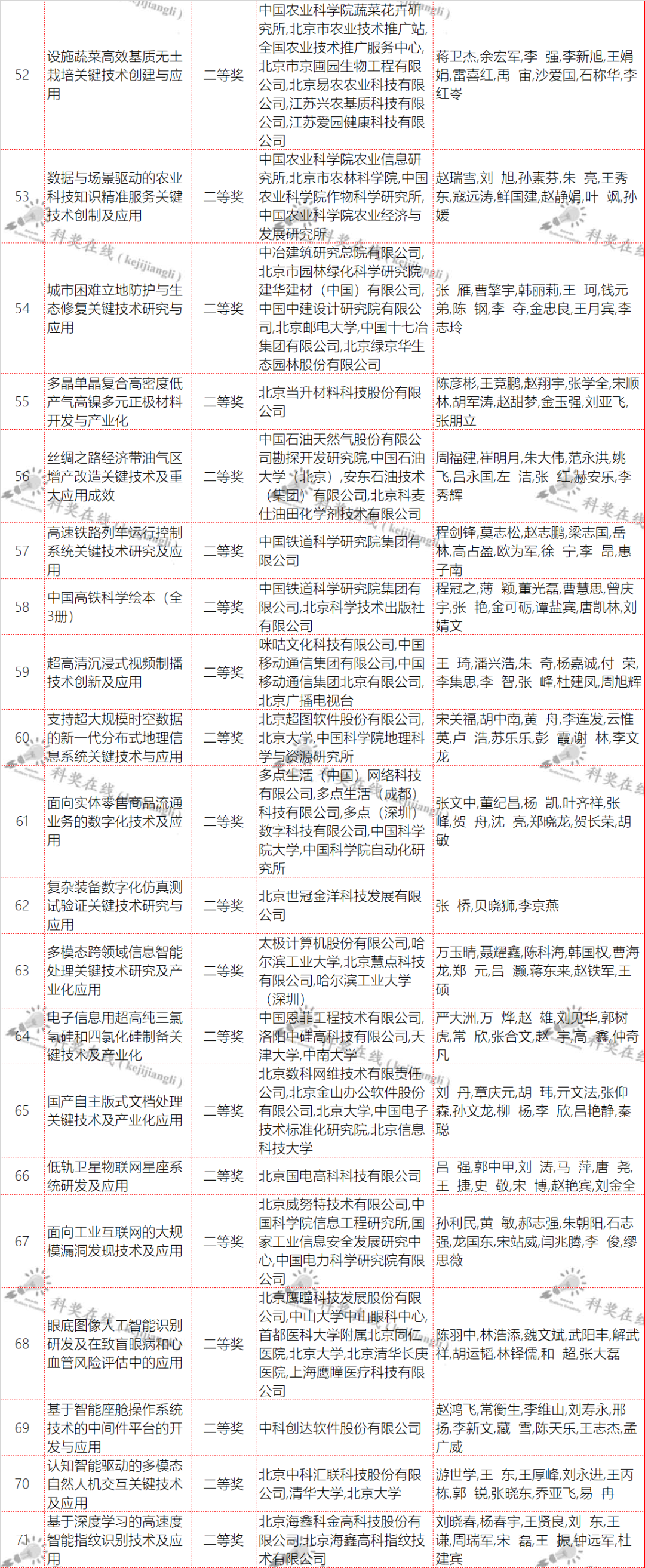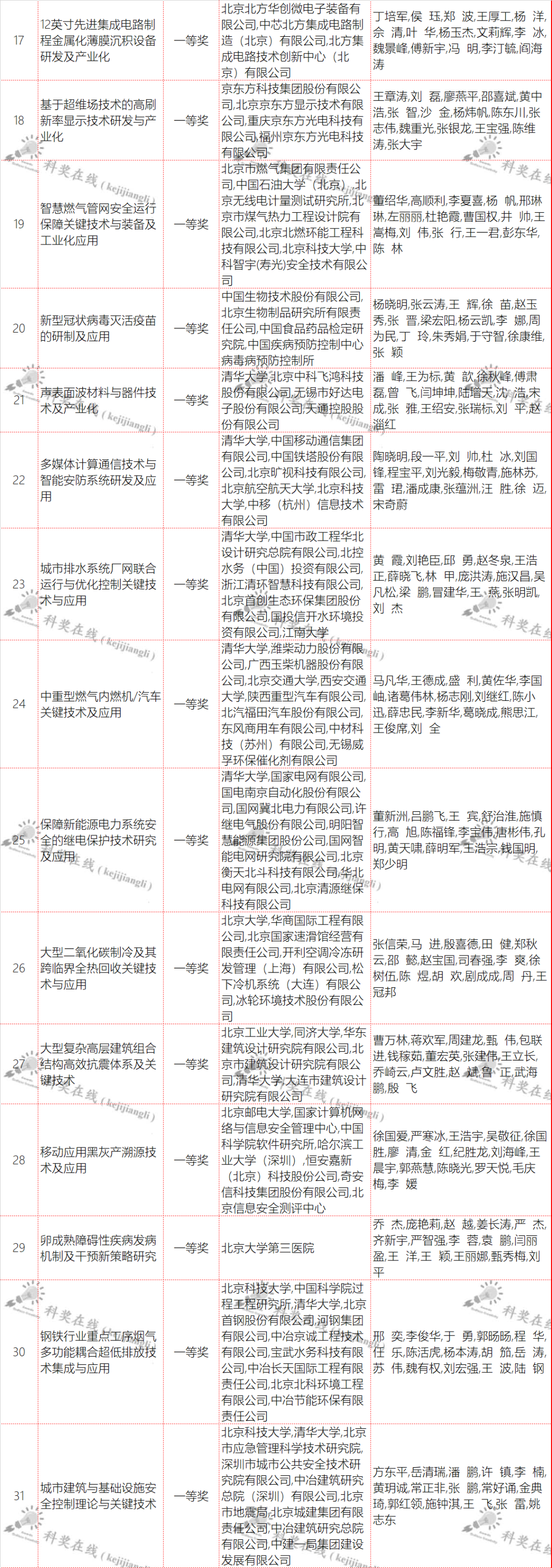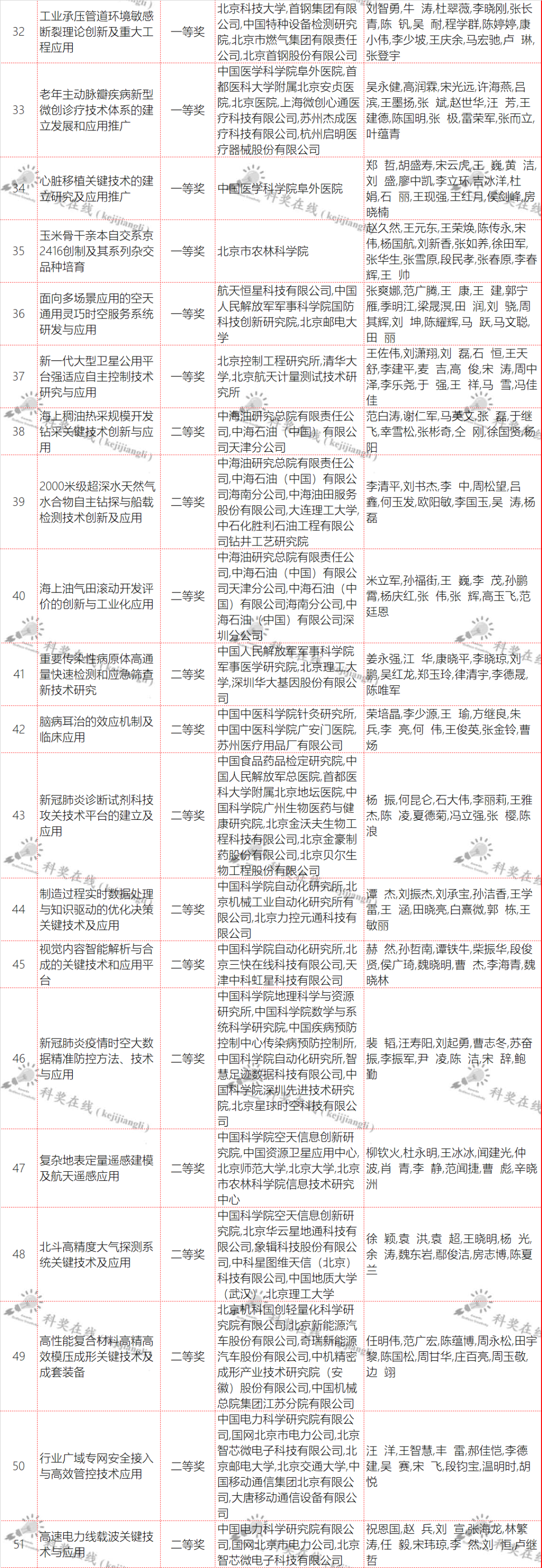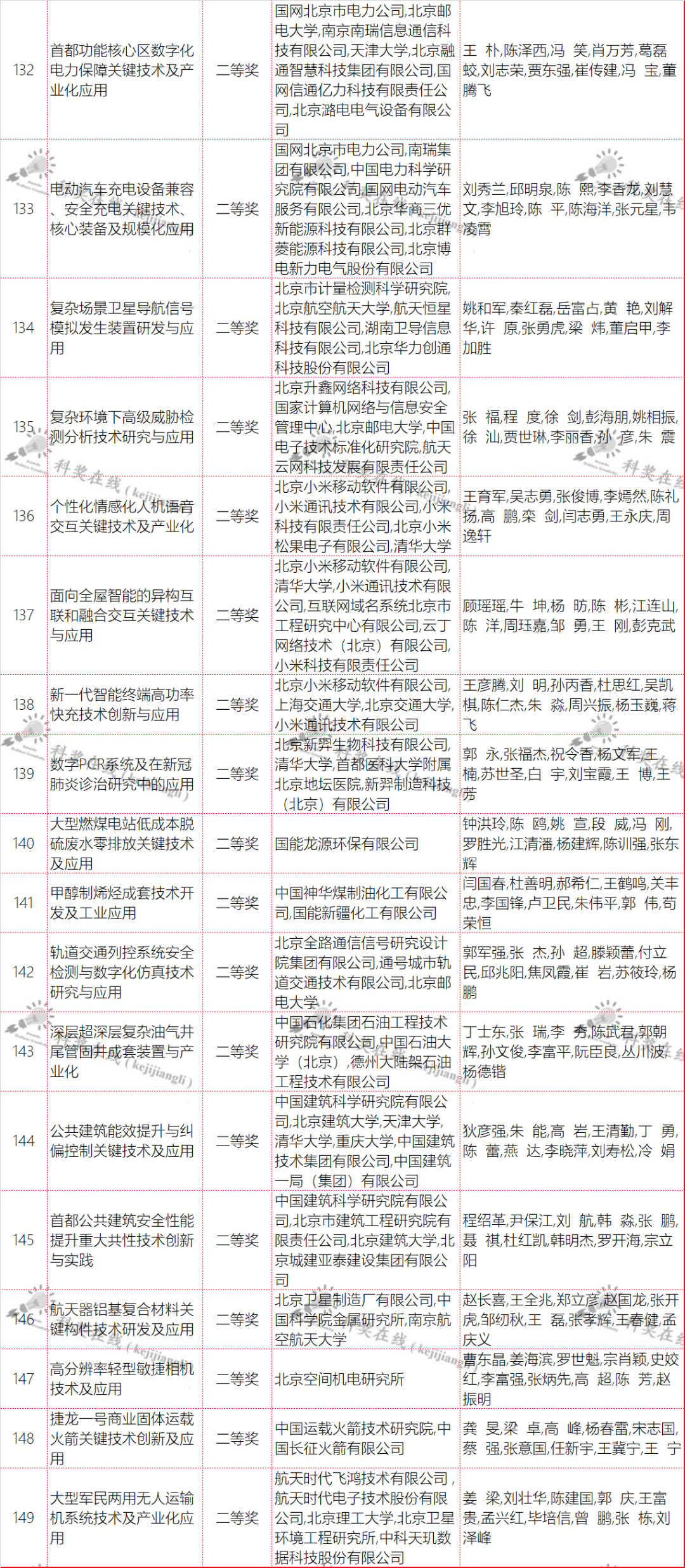 授予“全系统全频北斗厘米级高精度定位芯片研发及产业化”等37项成果北京市科学技术进步奖一等奖,授予“北斗高精度大气探测系统关键技术及应用”等112项成果北京市科学技术进步奖二等奖。