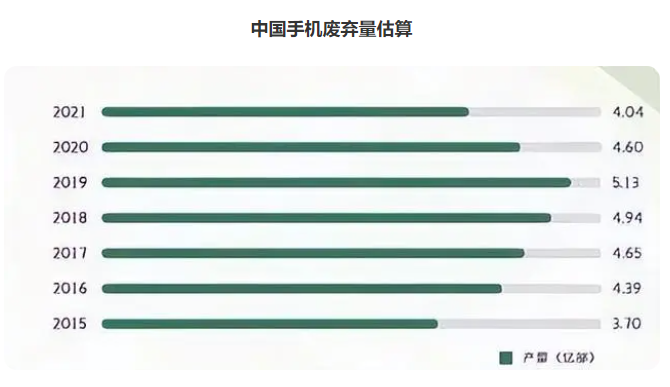 以手机市场为例,中国循环经济协会近期发布的一份报告提到,近五年来我国平均每年的手机销量达到4.3亿部,占全球手机总销量的30%;